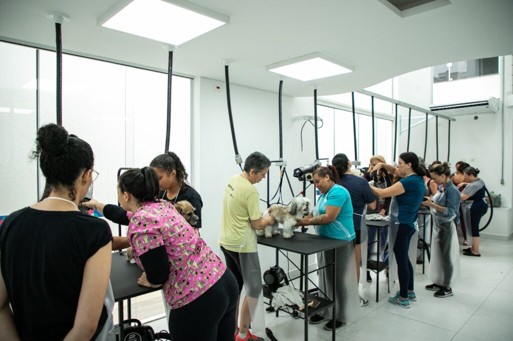 A Escola de Saúde e Bem-Estar Animal da Prefeitura de São Caetano iniciou na segunda-feira (20/5) as aulas práticas de Banho e Tosa com cães. A ideia do curso é capacitar a população para atuação no setor pet com qualidade e, também, gerar emprego e renda.