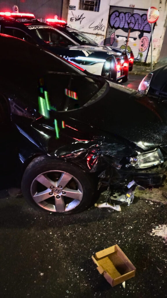 Durante patrulhamento preventivo, a equipe foi alertada pelo Smart Sanca sobre o crime recém-ocorrido, sendo que os autores fugiram em um veículo Honda Civic preto. De imediato, os GCMs iniciaram o cerco e localizaram o automóvel nas proximidades da Avenida Guido Aliberti. Em ação rápida, as viaturas iniciaram o acompanhamento do carro, que tentou escapar em alta velocidade pelas avenidas Guido Aliberti e do Estado, desrespeitando as ordens de parada dos agentes e adentrando o município de São Paulo.