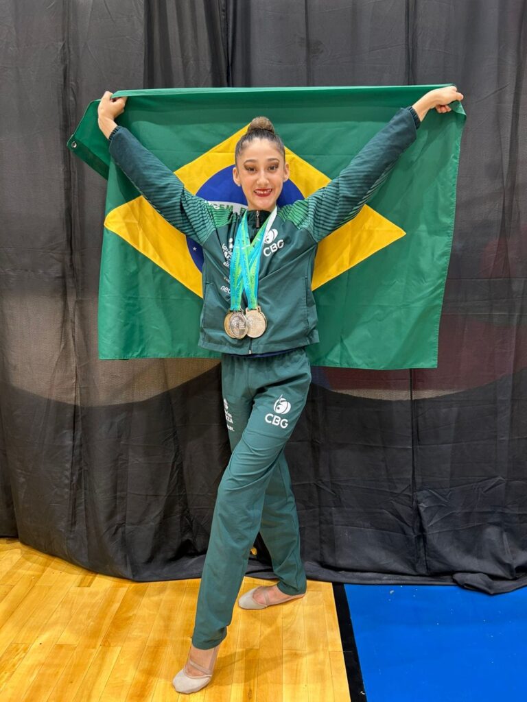 A ginasta sul-caetanense conquistou as medalhas de ouro por equipes e três de prata: no individual geral e nos aparelhos Bola e Fita. A ginasta sul-caetanense integrou a equipe brasileira ao lado de Sarah Mourão e Beatriz Vieira, coroando uma campanha marcada por excelência técnica e dedicação.