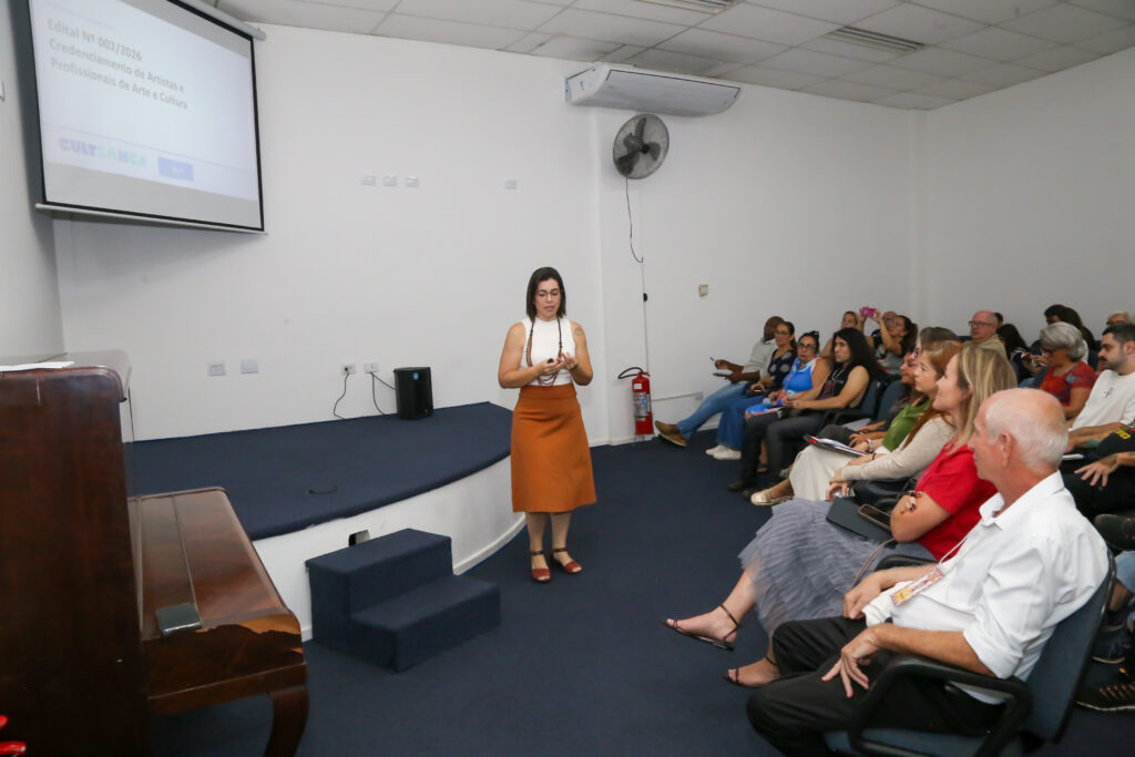 O auditório da Secretaria Municipal de Cultura (Secult) de São Caetano do Sul ficou lotado na manhã desta quarta-feira (4/3) de artistas interessados em se apresentarem em eventos e atividades promovidos pela Prefeitura de São Caetano, por meio da Secult. Eles vieram obter mais informações e tirar dúvidas sobre o novo edital nº 002/2026: Chamamento Público de Cadastro em Fluxo Contínuo, que ficará aberto, ininterruptamente, por um período de 36 meses.