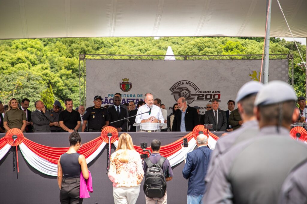 O comandante do 6º BPM/M, tenente-coronel Fernando Carvalho Ricardo, destacou a dimensão da unidade e a importância da atuação integrada entre as forças de segurança da região. “Hoje somos o maior batalhão da Polícia Militar do estado de São Paulo. Nós somos 950 policiais militares que defendem diariamente um milhão de habitantes: 840 mil em São Bernardo do Campo e 165 mil em São Caetano do Sul”, afirmou.