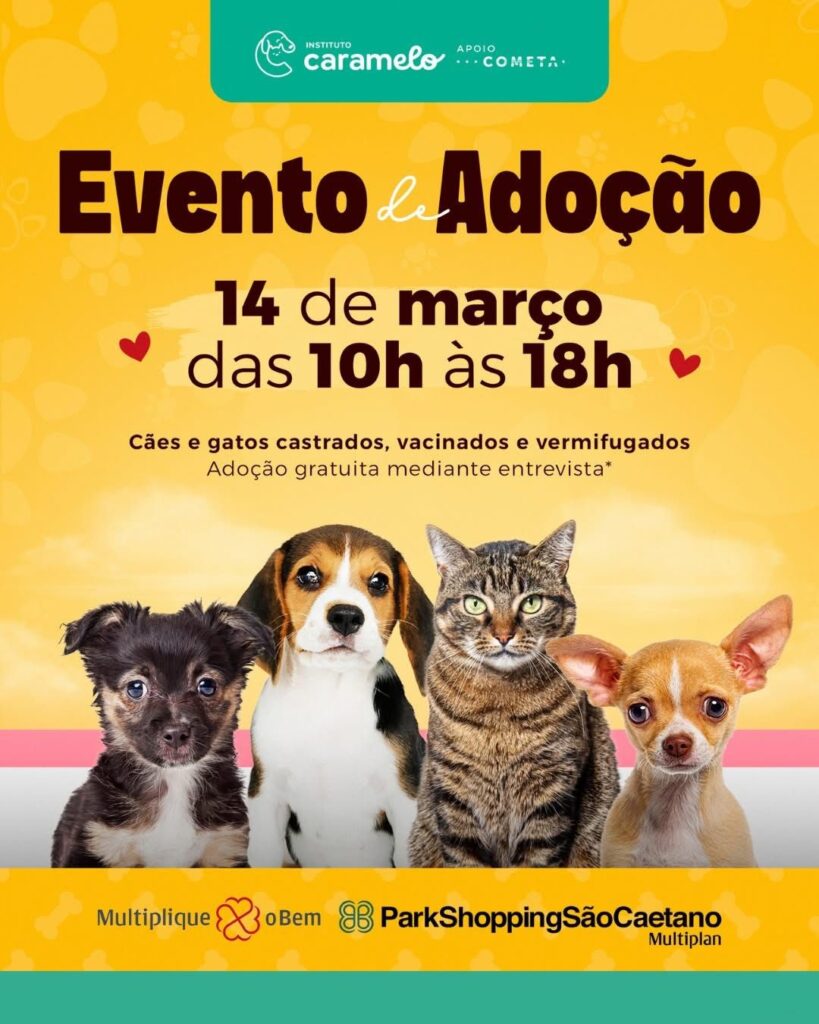 No próximo sábado, 14 de março, o ParkShopping São Caetano promove uma feira de adoção de cães e gatos em parceria com o Instituto Caramelo, organização reconhecida pelo trabalho de resgate, cuidado e reinserção de animais em situação de vulnerabilidade. A ação acontece das 10h às 18h, no Piso L2 (Piso São Paulo), ao lado da loja Havaianas.
