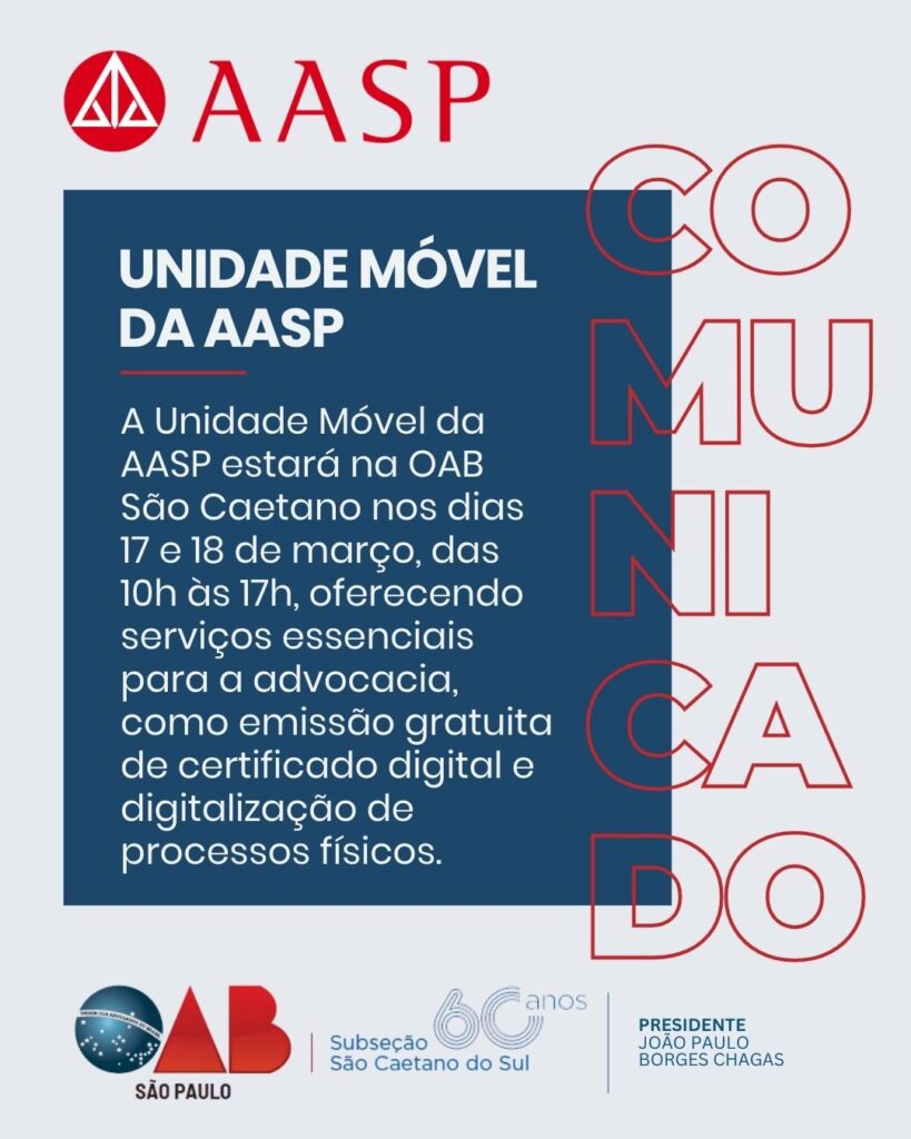 📍Local: OAB São Caetano do Sul – Estrada das Lágrimas, 361