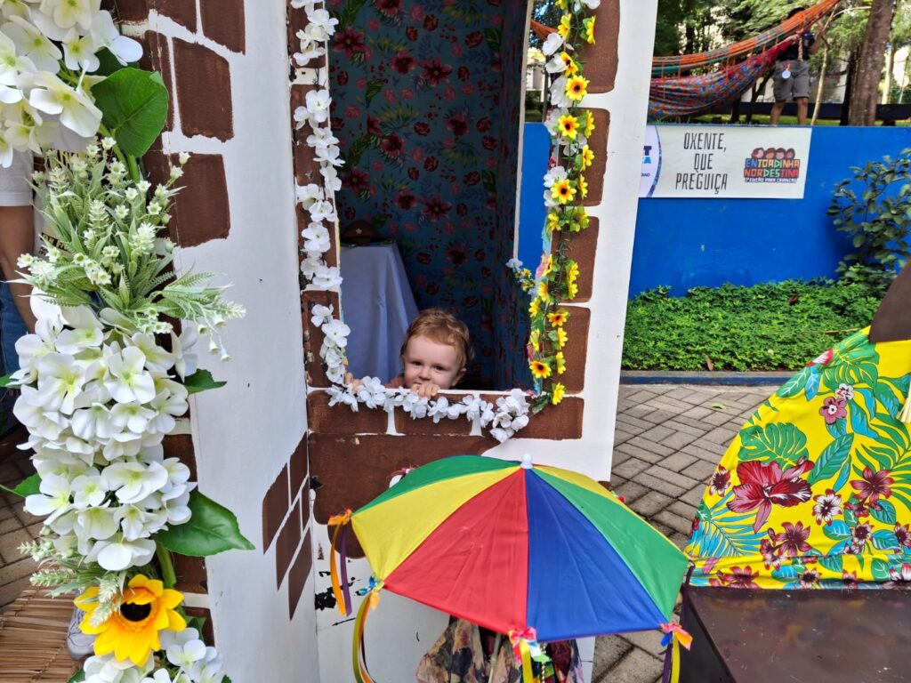 “Está a coisa mais linda. A Prefeitura aproveitou o espaço do parque, que já é bonito, e trouxe a cultura nordestina, tão colorida, além de música, contação de história… Ficou um evento muito rico para as crianças”, confirmou Mariana. “O Murilo está aproveitando os brinquedos ao som do forró e da capoeira. Assim ele vai sendo introduzido nessa cultura que é, também, a cultura do Brasil”, disse a sul-caetanense.